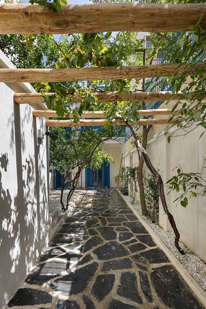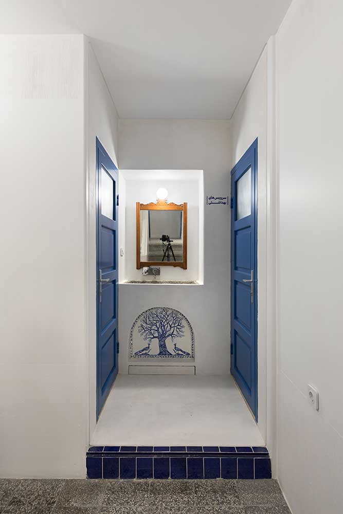 The client’s request was for a house in the style of traditional Santorini homes in Greece, with white walls and blue doors and windows. The main challenge for us was to harmonize the client’s vision with preserving the authenticity of the Iranian house. To achieve this, we studied Iranian houses and adopted an approach focused on reviving the existing spaces and elements in the building, which shaped the overall project design.