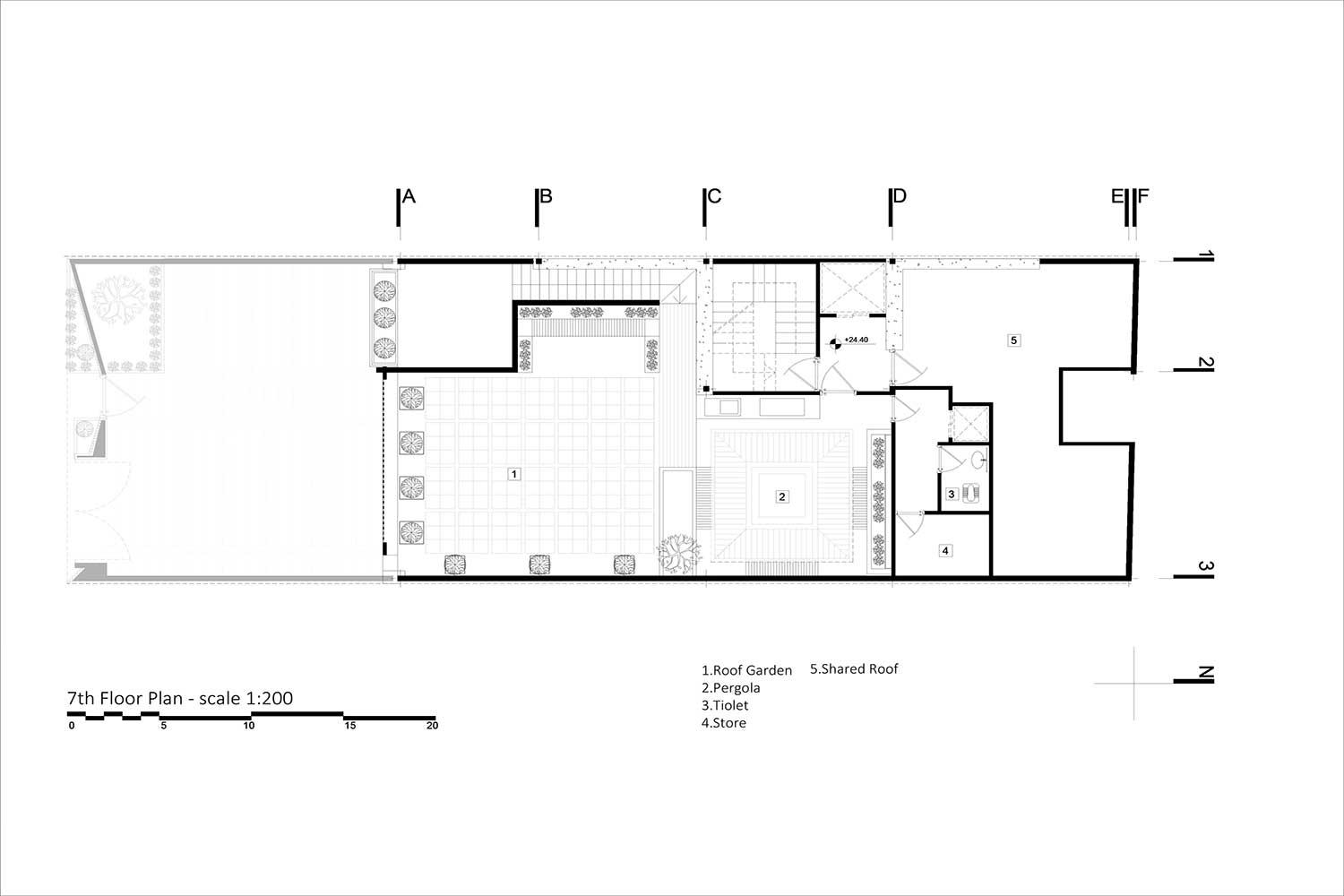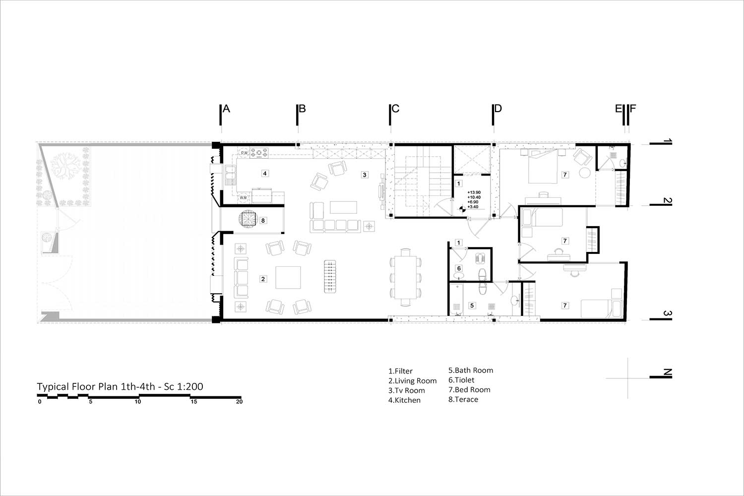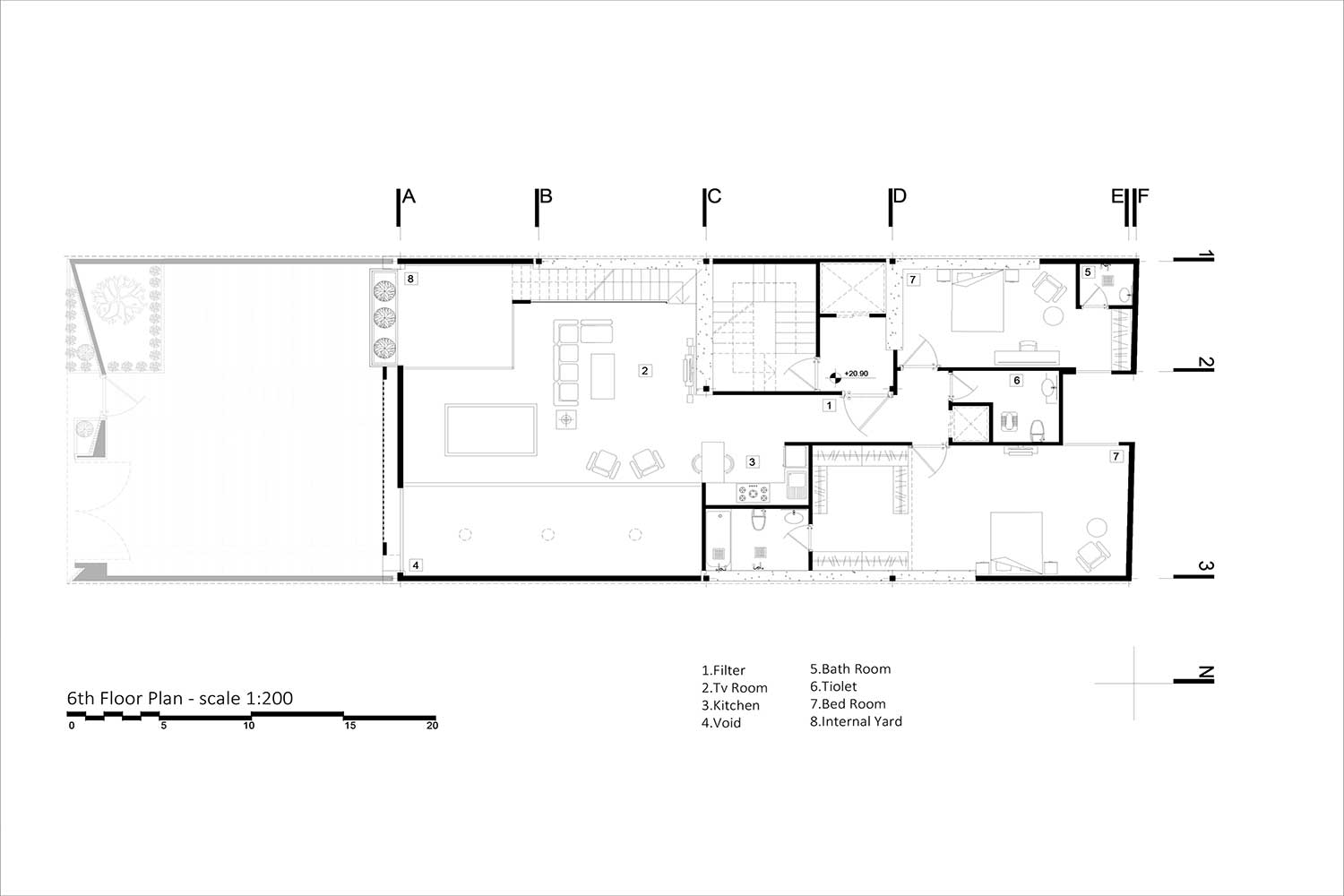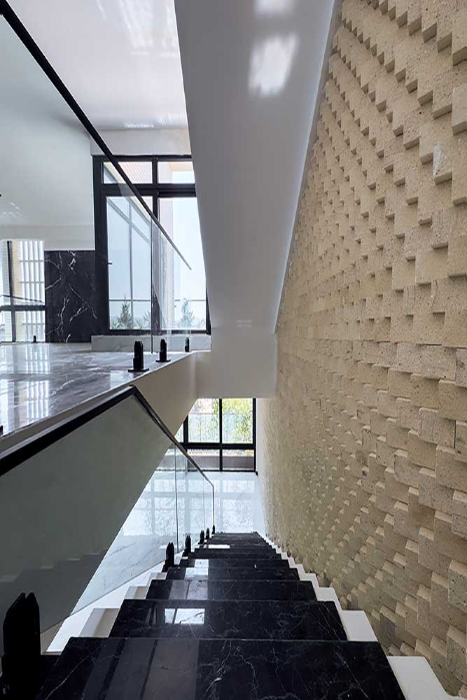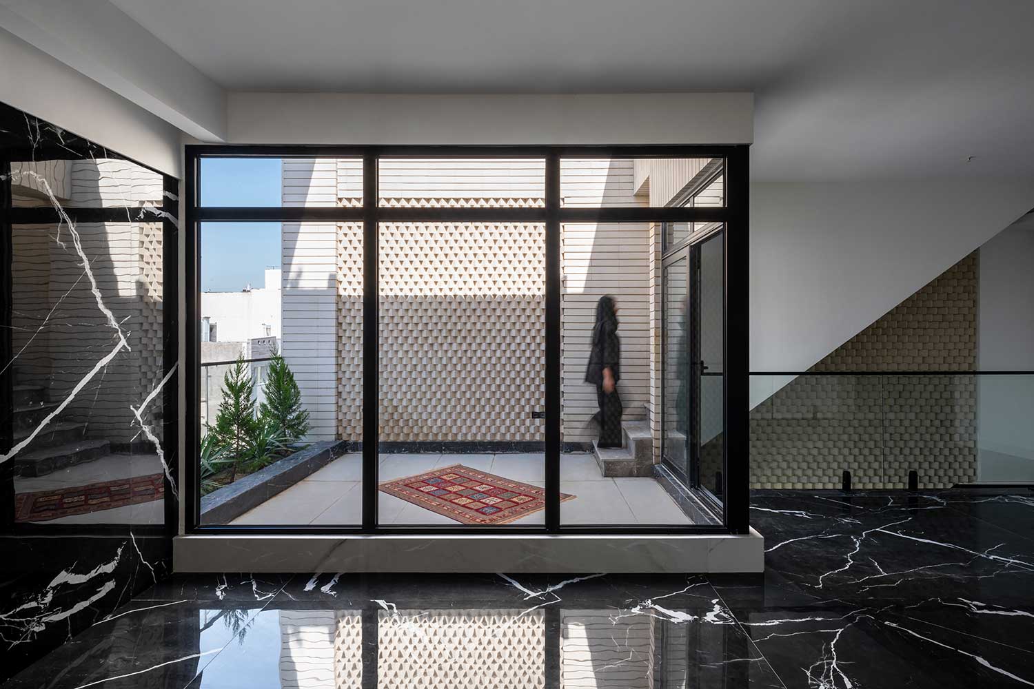 The primary challenge of the project was to establish a connection between the client’s preferences for their living area and the neighborhood’s historical, cultural, and economic features. As architects, we saw our task as developing a model that could both blend in with the neighborhood’s historical context and serve as a viable substitute for the varied and haphazard structures that have been the long-term homes of the local population. The first strategy to accomplish this is to deal with the creation of memories, which is a junction between the history of the fabric, old dwellings, and the sensation of being in the space, rather than going back to the previous architectural form and image and instead following merely a cursory impression. It caters to the project’s customers and clients.The employer’s definition of the project (construction, investment, independence, personal consumption) is the first point in the definition of an apartment project. This presence can limit the project’s planning and formation system, and in the interim, the combination of two or more distinct aspects may result in duality or multiplicities. The employer’s decision to set aside a unit for his personal use and schedule units for rent with the potential for future usage by his child posed the biggest obstacle to this project.This project was turned over to our office on a six-story program on a 250-meter plot of northern land in the middle of one of Mashhad’s historic neighborhoods. The Majd district is one of the most well-known parts of the city, yet Mashhadis are more familiar with its gardens, greenhouses, and summer homes than with its long history of habitation. The neighborhood is evolving these days, and it takes careful consideration to develop patterns. Due to the neighborhood’s local character and the dearth of new residents, investors are less interested in investing here, and the primary goals of apartment buildings are renting, individual living, and capital preservation. From the employer’s perspective, the location was chosen because of the employee’s feeling of familiarity with the area and proximity to their place of employment and family. The client, who is fifty years old, lives with his spouse and child. Making jewelry is his profession, thus he cherishes the skill of expert artisans and pays close attention to detail in this regard. The employer creates a paradox by pursuing opulent design and summarizing in an opulent manner while simultaneously emphasizing the delightful and unforgettable experience of living in homes with courtyards. Our objective was to rethink employer expectations and pursue luxury in the form of excellence, usefulness, and tangible, personal, and unforgettable experiences.