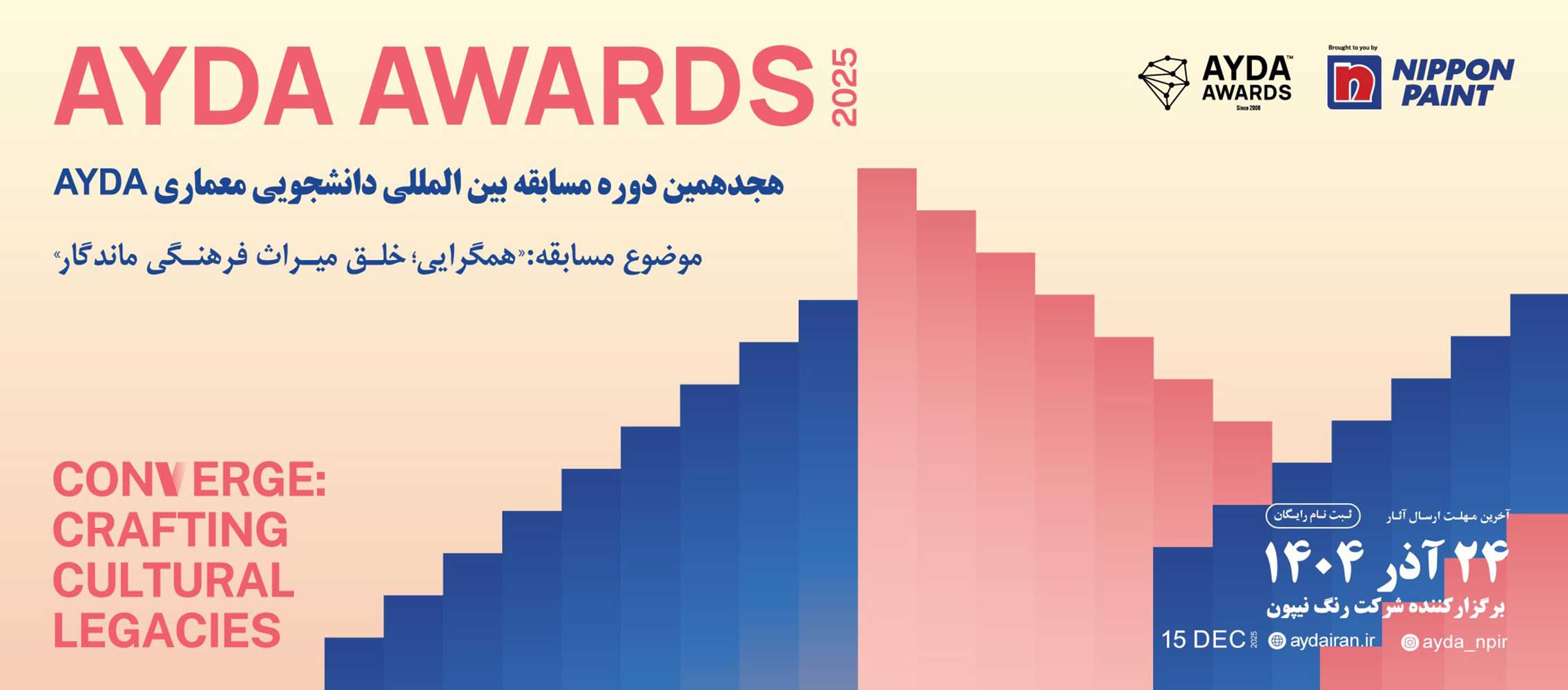 مسابقه AYDA AWARDS 2025-2026 با محوریت ”همگرایی” فرصتی است تا طراحان خلاق از سراسر جهان گرد هم آیند و به پرسش مهمی پاسخ دهند. اینکه چگونه میتوان میان پاسداشت ارزشمندترین سنتها و بهرهگیری از نوآوریهای امروز، تعادلی پایدار ایجاد کرد. این رویداد بر اهمیت فرهنگ در شکلگیری هویت، روایت گری و الهام بخشی در طراحی تاکید دارد و از شرکت کنندگان میخواهد با نگاه خلاقانه، راهکارهایی نو برای حل چالشهای اجتماعی و زیر بنایی ارائه دهند.