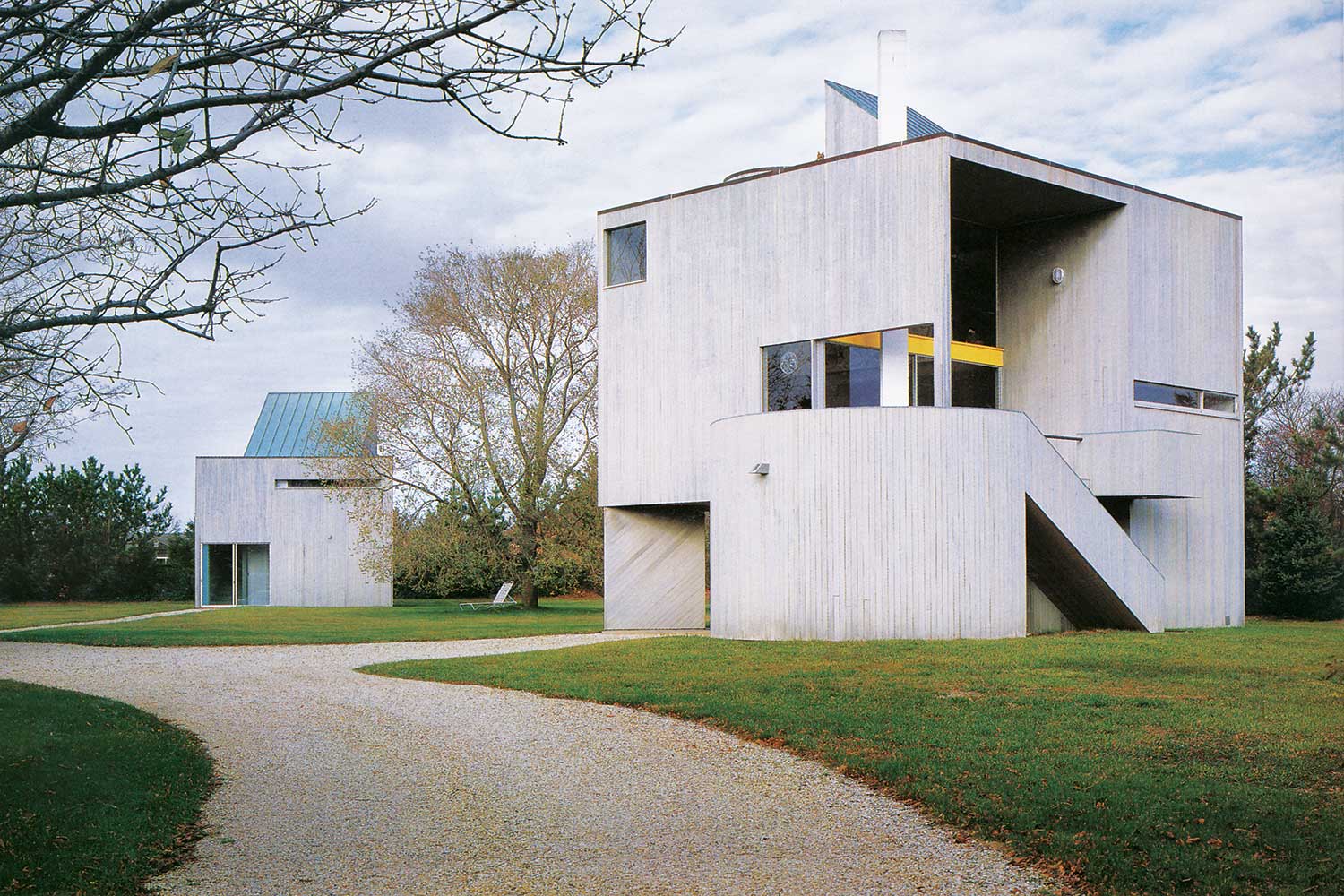 یک سال پس از اتمام ساخت خانه، بخش الحاقی با یک استودیوی جدید و اتاق مهمان به آن اضافه شد که به شکل بنایی کاملا مجزا، اما دارای همان ایده و برشهای هندسی و ظاهر مجسمهوار بود، ضمن آنکه از همان نقشهی مقطع خانه در طرح جدید استفاده شد. در هر دو بنا، تختههایی در کف تعبیه شده، اسکلتها چوبی هستند و نمای خارجی و داخلی با چوب سدار اجرا شده است. برخی از پنجرهها در قاب سدار فرو رفتهاند و برخی دارای حاشیههای رنگی زرد، قرمز یا مشکی هستند. همچنین در استودیو و اتاقهای مهمان، شاهد المانهای متحرکی می باشیم. بنای متاخر با چرخشی 45 درجه نسبت به ساختمان پیشین، احداث شد و به این ترتیب موقعیتی به وجود آمده که گوشه را در مقابل یک نما قرار میدهد؛ این امر به شدت بر پویایی ساختمان و سایت تاثیر گذاشته است.