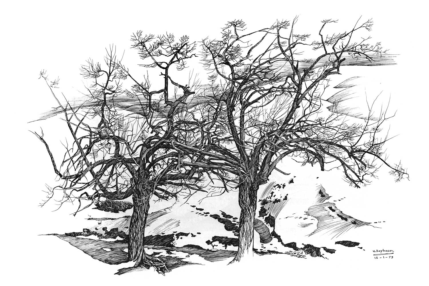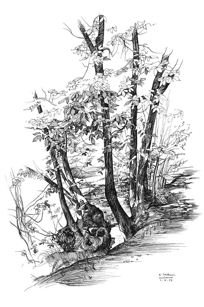 منظرهای از یک دهکده با درختان گردو، اَنباج