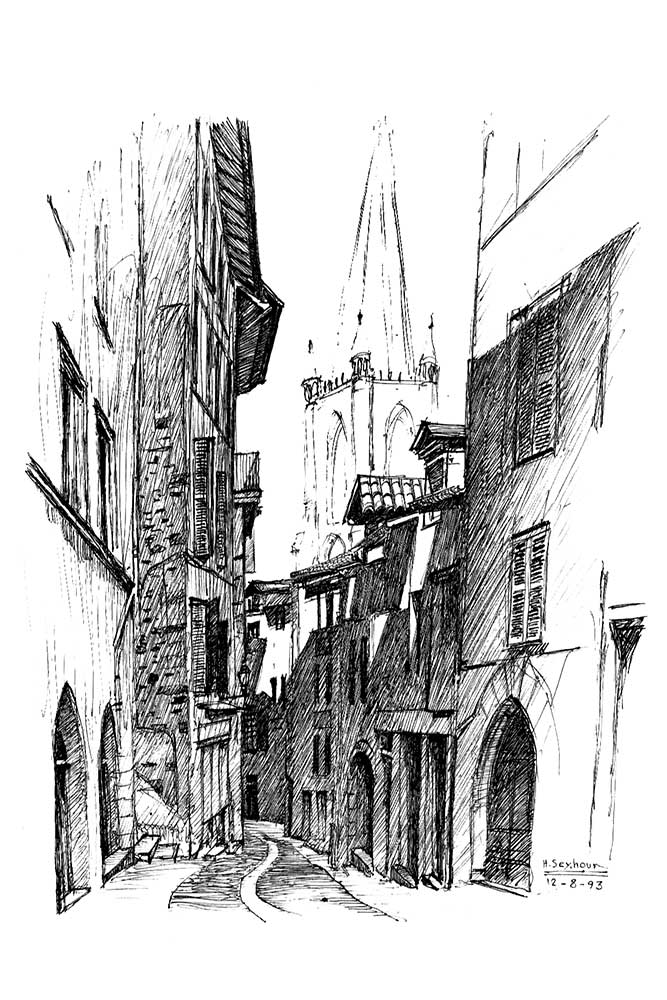 خیابانی در تول، قلم و مرکب، فرانسه، مجموعهی خصوصی، 5/52 × 36 سانتیمتر
