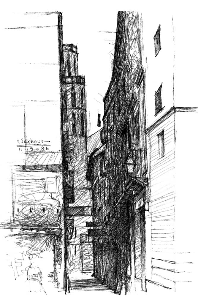 خیابانی در بارسلونا، قلم و مرکب، 32 × 5/23 سانتیمتر