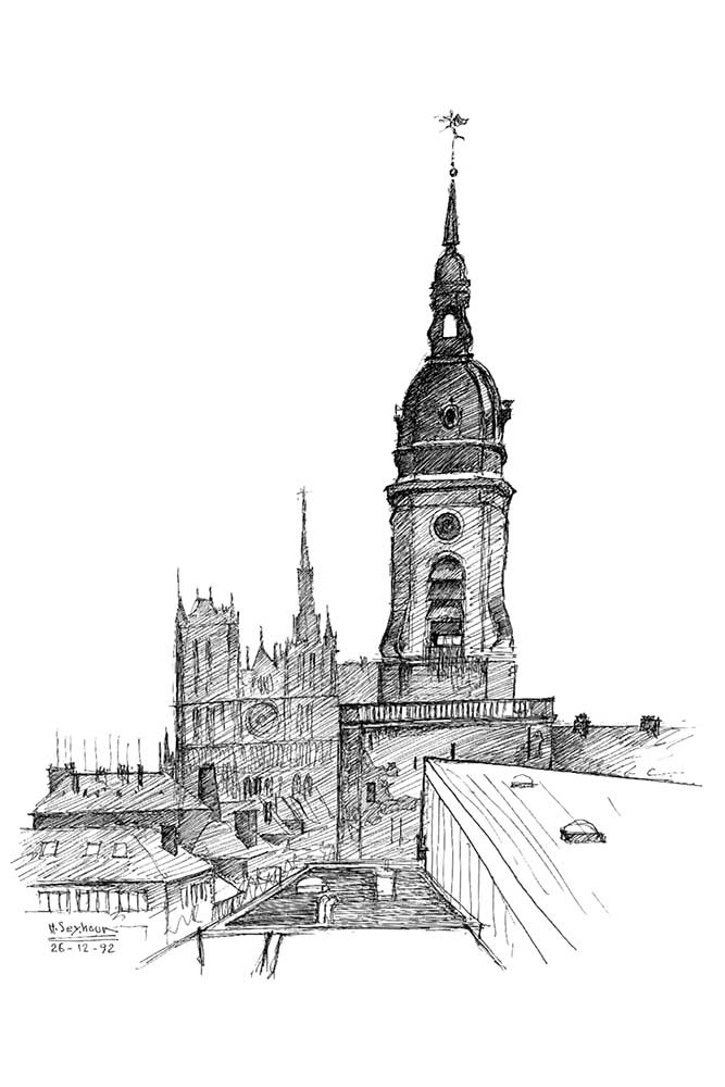 He continued: “When facing natural or architectural compositions, my approach is purely emotional. My technical knowledge of architecture never intrudes consciously; I rely on it only to translate what I feel. I cannot draw unless the subject moves me. Emotion always leads — technique follows.”