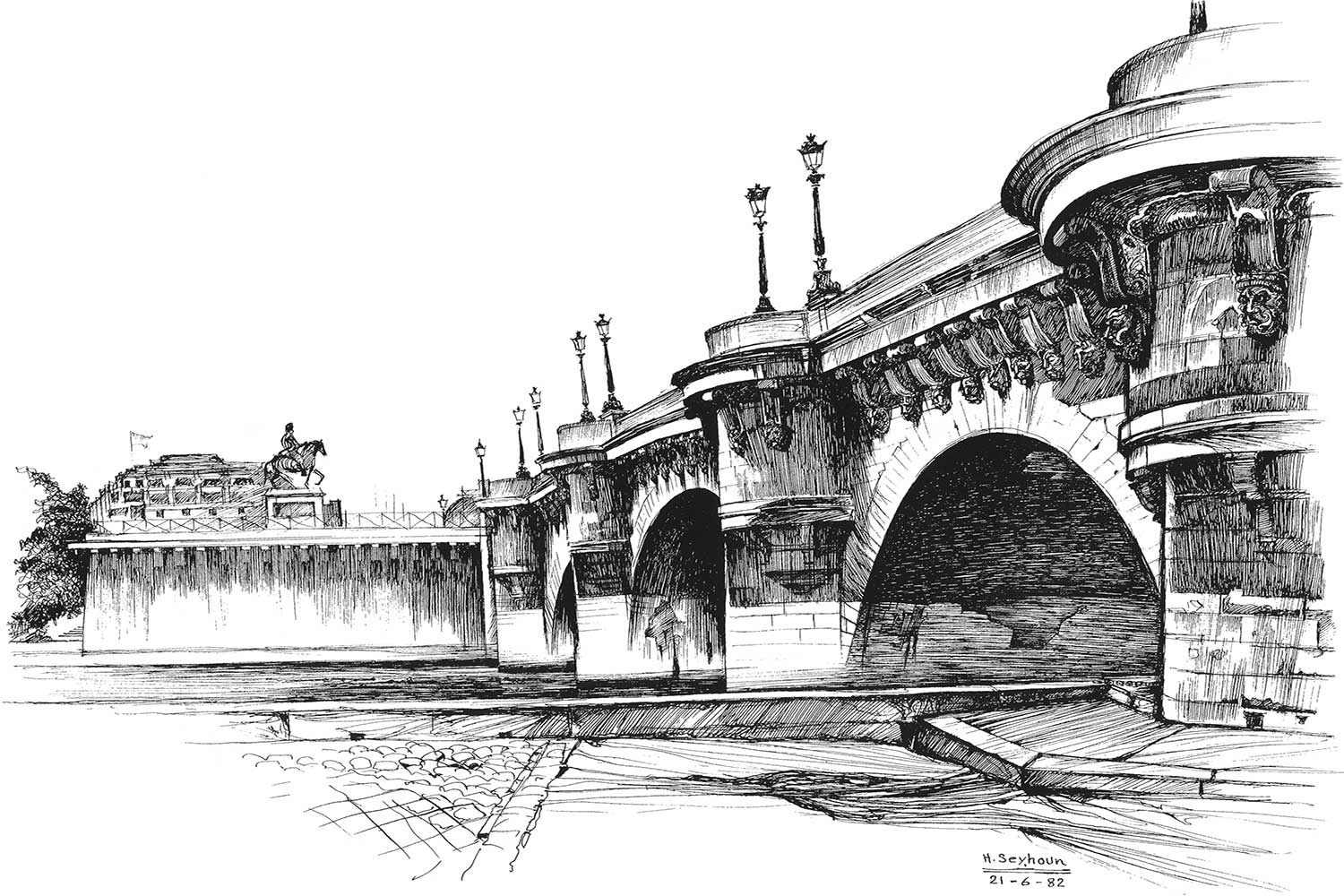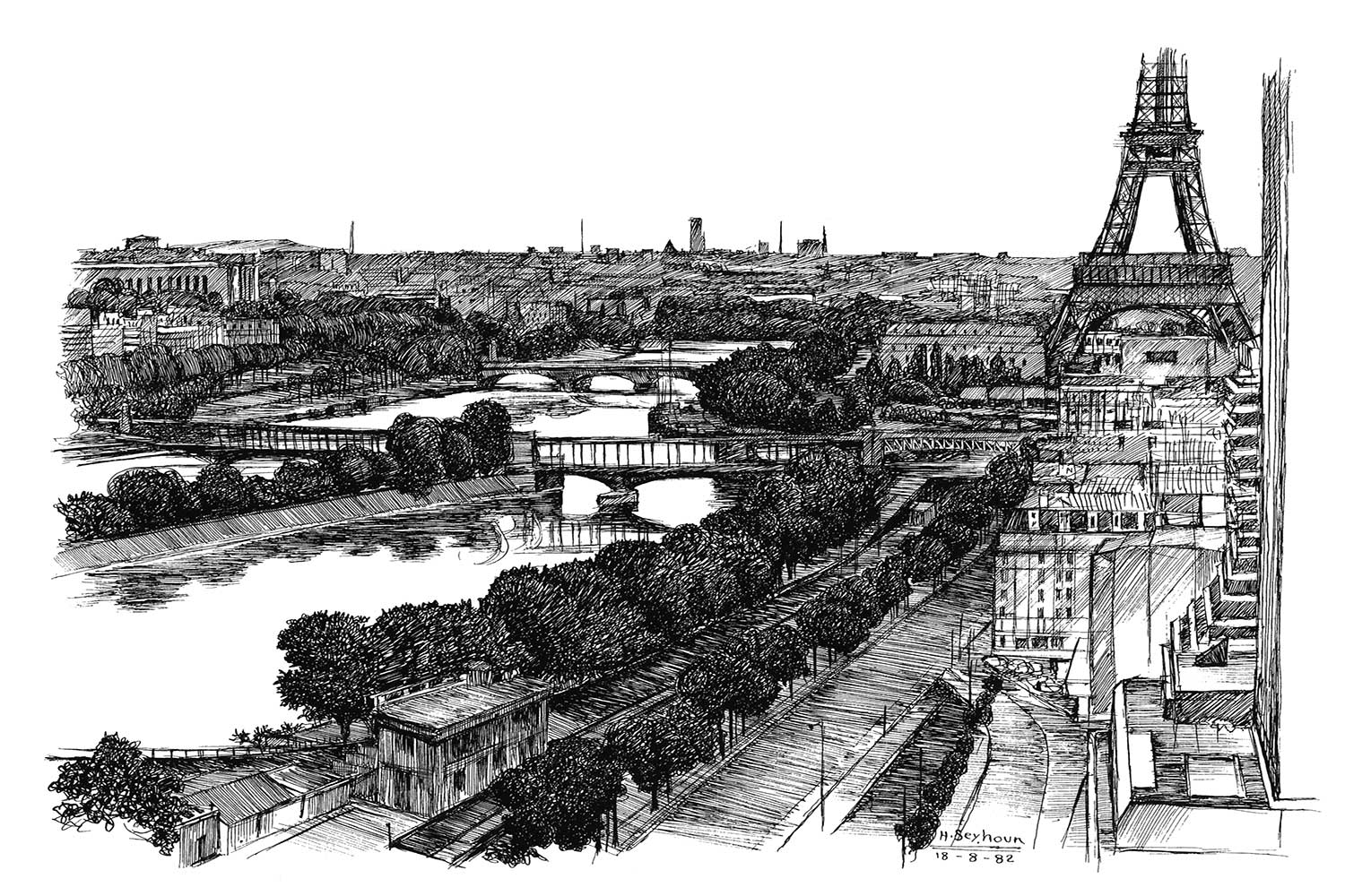 رودخانهی سِن و برج ایفل، قلم و مرکب، پاریس