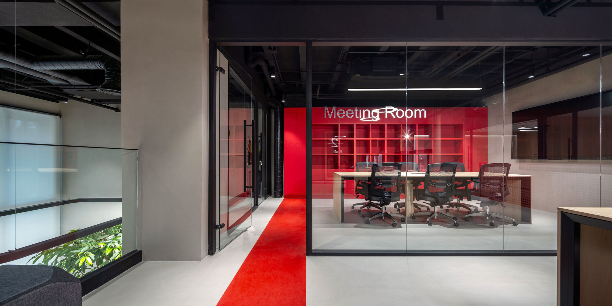 دفتر کار روبان قرمز با مساحتی حدود ۳۵۰ مترمربع در برج فناوری شریف تهران قرار دارد. هدف اصلی پروژه، طراحی فضایی منعطف، پویا و کاربردی با رویکرد تعامل بوده است. طراحی بر اساس الگوی ABW (Activity Based Working) شکل گرفته که امکان انتخاب میان محیطهای کاری متنوع را فراهم میسازد. در این نوع طراحی، فضاهای متفاوتی مانند فضاهای کار اشتراکی و تیمی، اتاق های جلسات کوچک و بزرگ، فضاهایی آرام برای تمرکز، فضایی برای جلسات طوفان فکری و همچنین فضایی برای گفت و گو، استراحت و حتی بازی های گروهی در نظر گرفته شده است و به کارمندان این امکان را می دهد تا با توجه به ماهیت کاری که انجام میدهند، از بین انواع محیطهای کار، فضای مناسب را انتخاب کنند.